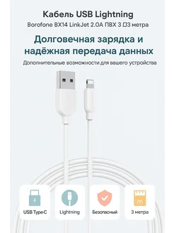 Кабель USB Lightning Borofone BX14 LinkJet 2.0A ПВХ 3метра