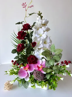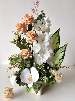 Искусственные цветы для декора, Роза, орхидея в кашпо