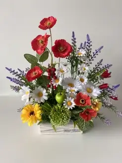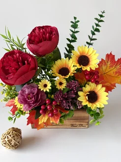 Искусственные цветы-пион, подсолнух, роза в кашпо
