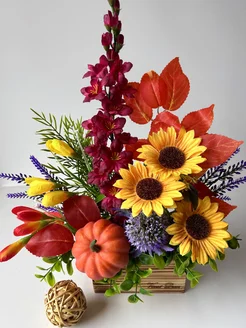 Искусственные цветы- подсолнух, тыква, хризантемы в кашпо
