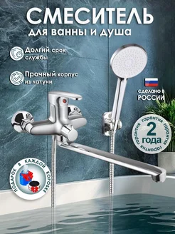 Кран смеситель для ванны с душем с длинным изливом и лейкой