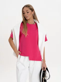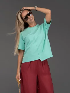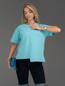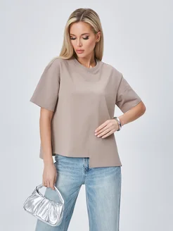 Футболка оверсайз плотная хлопок асимметричная базовая
