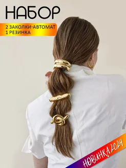 Большие золотые заколки набор 3 штуки