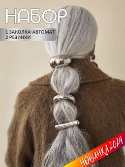 Большие серебряные заколки 3 штуки набор
