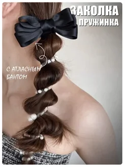 Резинка пружинка с жемчугом и бантом