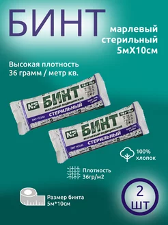 Бинт марлевый стерильный 5мХ10см 2 шт