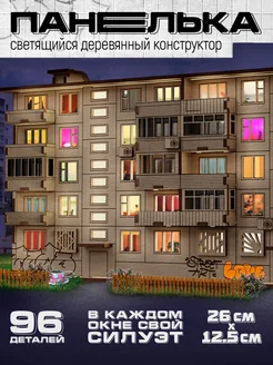 Конструктор ночник Панелька деревянный сборный, 93 детали