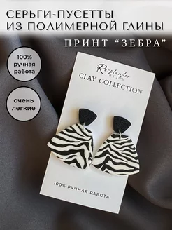 Серьги гвоздики-пусеты принт зебра