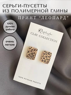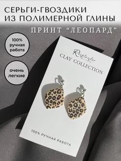 Серьги гвоздики-пусеты принт леопард