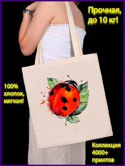 шоппер сумка с рисунком божья коровка, лист, пятна