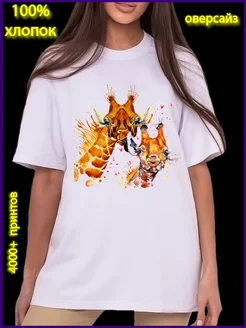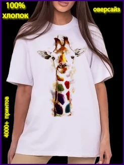 футболка женская больших размеров с рисунком жираф, шея, уши