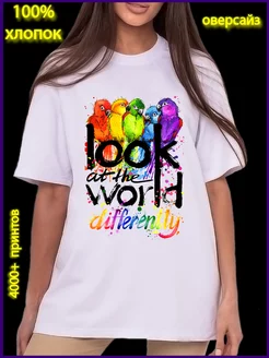 спортивная футболка женская попугаи, краски, надпись