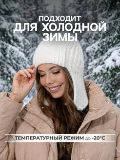 Чепчик шапка теплая вязаная из ангоры с завязками