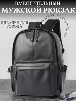 Рюкзак экокожа мужской городской черный большой