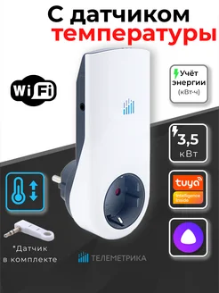 Умная розетка с Алисой, Wi-Fi и датчиком температуры, 16А