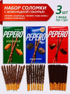 Набор соломки PEPERO, Корея, 3 шт, альмонд, чоко куки, ориг