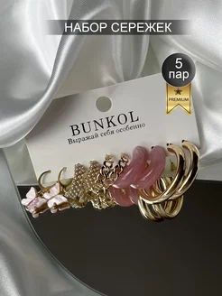 Серьги бижутерия кольца гвоздики набор пусеты 5 пар