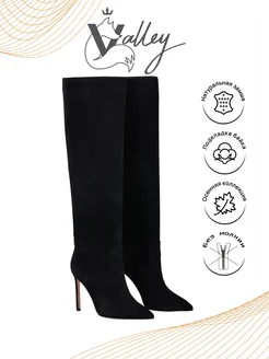 Замшевые ботфорты демисезонные на высоком каблуке-шпильке