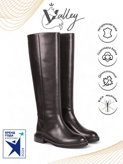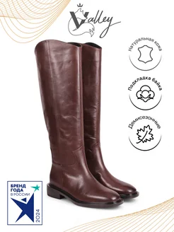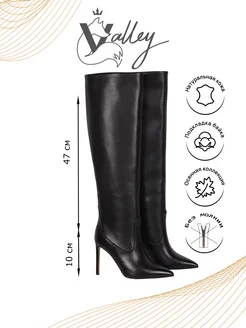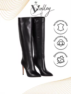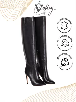 Кожаные ботфорты демисезонные на высоком каблуке-шпильке