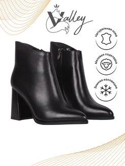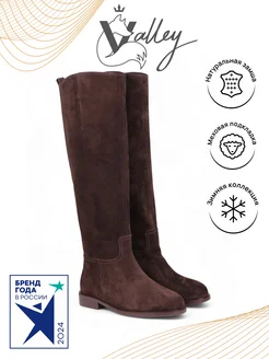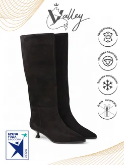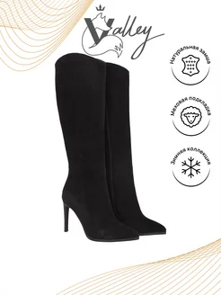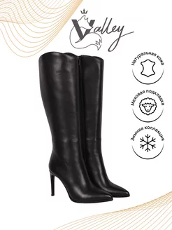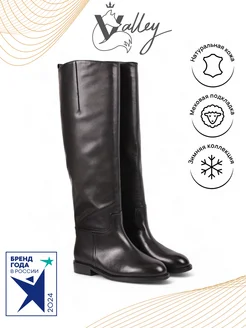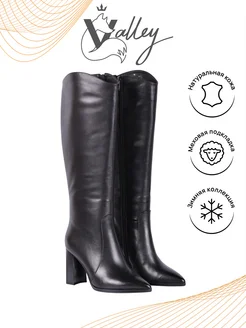 Зимние высокие сапоги из натуральной кожи на каблуке
