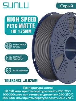Матовый High Speed PETG пластик для 3D принтера,1кг,Серый