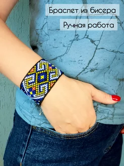 Браслет из бисера широкий Этнический Бохо стиль handmade