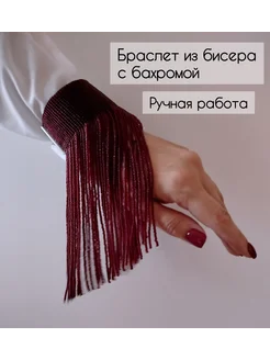 Браслет - манжета из бисера с бахромой Гранатовый 1 штука