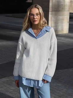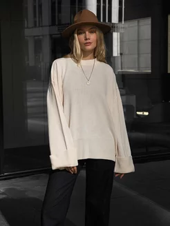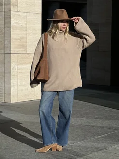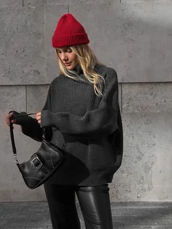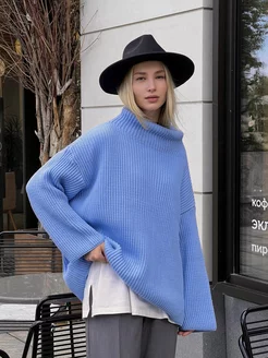 Свитер оверсайз с горлом джемпер вязаный удлиненный