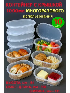 Контейнер многоразовый с крышкой 10шт. 1000мл.(1литр)