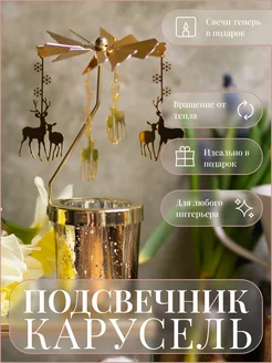 Подсвечник вращающийся, олени 10 Свечей в Подарок