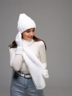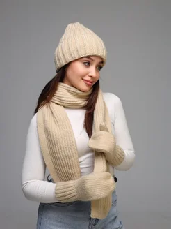 Комплект шапка, шарф и варежки жeнский зимний