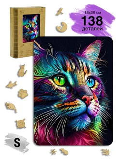 Деревянные пазлы "Неоновый кот", S