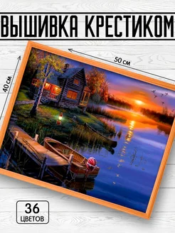 Вышивка крестом набор 40х50 см Домик у Реки Пейзаж
