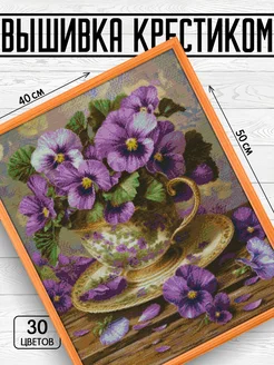 Вышивка крестом набор 40х50 см Фиалки Цветы