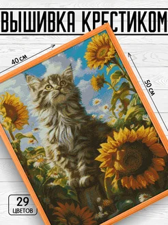 Вышивка крестом набор 40х50 см Кот и Подсолнухи Цветы