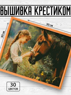 Вышивка крестом набор 40х50 см Девушка и Лошадь Животные