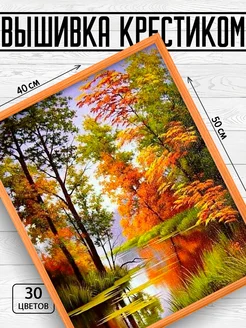 Вышивка крестом набор 40х50 см Осенний Лес у Реки Пейзаж