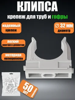 Крепеж-клипса для ПНД и труб 32 мм прямого монтажа - 50 шт