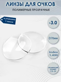 Линзы -3.0 для очков полимерные прозрачные - 1 шт