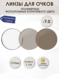 Линзы -7,0 для очков Фотохромные коричневые - 1 шт