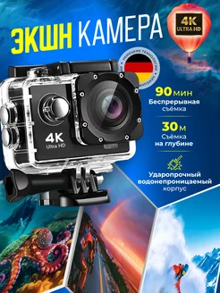 Экшн камера 4К водонепроницаемая с креплениями гоу про