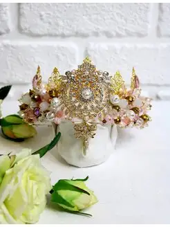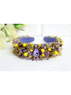 Сиреневый ободок тиара с камнями и бисером Дольче