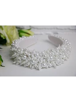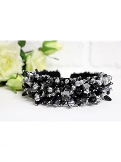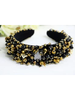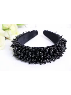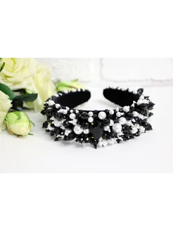 Ободок с жемчугом черно-белый вечерний в стиле Дольче