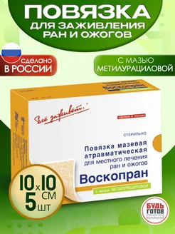 Повязка Воскопран на рану с мазью ранозаживляющая 10х10 см