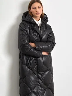 Удлиненный пуховик с натуральным пухом