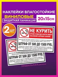 Наклейки "Не курить - штраф", 14х20 см. - 2 шт