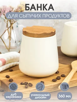Банка керамическая для сыпучих продуктов с крышкой из дуба