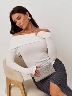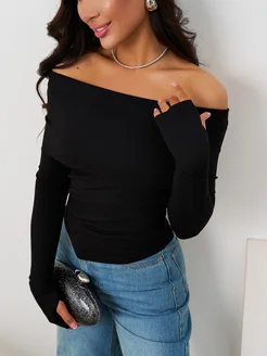 Лонгслив с открытыми плечами с драпировкой облегающий