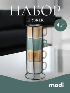 Набор кружек на подставке, кофейные чашки 4шт