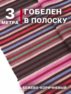 Ткань Гобелен в полоску Коричневый, 3м*150см, 215гр.м2